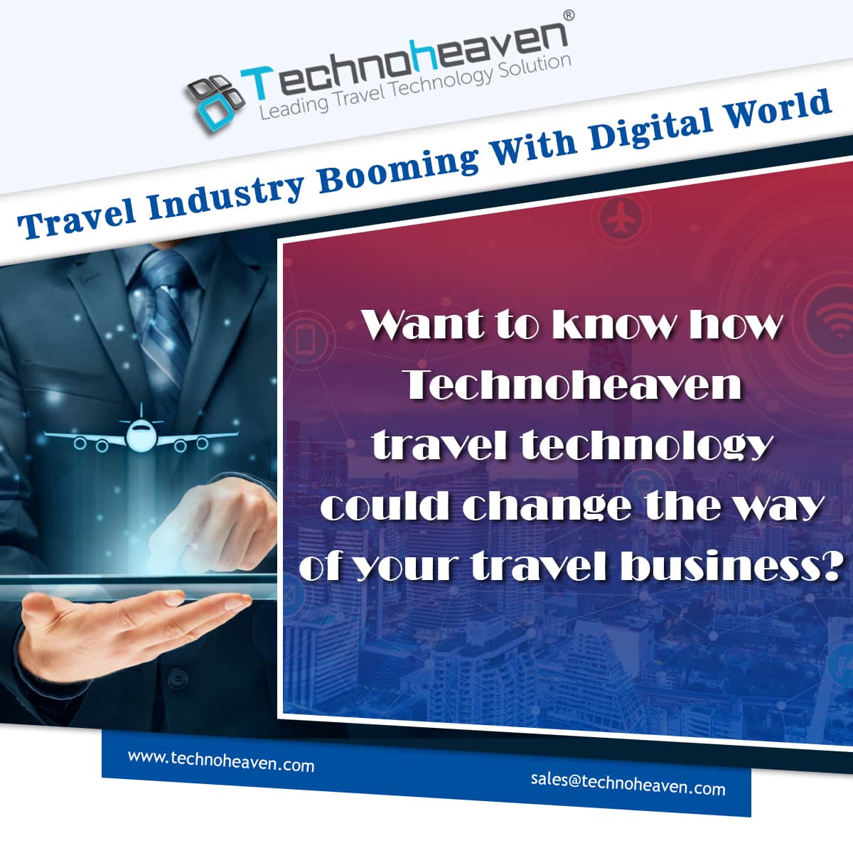 Technoheaven is the best Travel Technology Company which embedded with great travel technology. We deliver B2B travel portal, B2C travel portal, Tour Operator Software, Travel Agency Software, Blockchain hotel booking technology and travel management system.